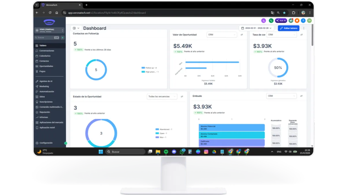 VeronaTech centraliza tus contactos, chats, ventas y marketing en una sola plataforma. Dejá de perder clientes por no tener orden.